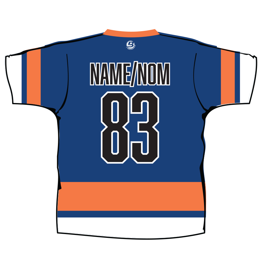 Your name will appear in CAPS on the back of the shirt. / Votre nom apparaîtra en MAJUSCULES au dos du chandail.
