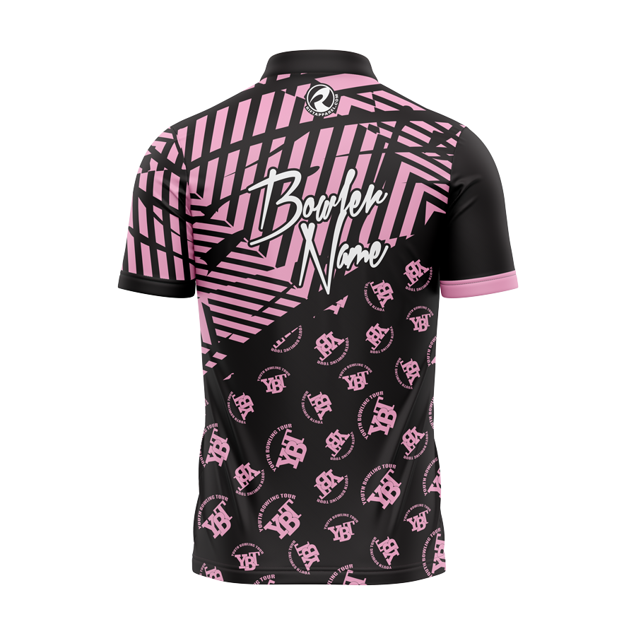 This style was specifically designed for the Youth Bowling Tour of Ontario (YBT). The shirt will appear exactly as shown in the picture, with the YBT logo in the displayed position. You can personalize it by adding your name using the product configurator below.