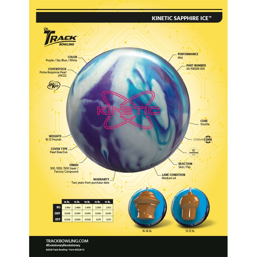 Lorsque l’avant de l’allée devient trop réactif, la Kinetic Sapphire Ice passe facilement à travers les têtes, permettant aux quilleurs d’ouvrir les angles sans compromettre le contrôle.