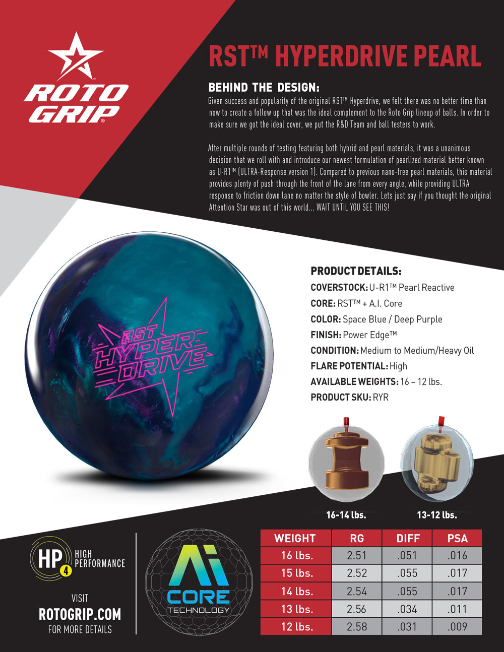 ÊTES-VOUS PRÊT ?... Eh bien, vous feriez mieux de l’être, car vous allez découvrir un nouveau niveau de performance avec la RST Hyperdrive, conçue pour offrir une réactivité inégalée et une puissance dévastatrice sur la piste. Cette boule est une véritable révolution pour les joueurs recherchant une trajectoire plus fluide en tête de piste et une réaction arrière explosive et continue.