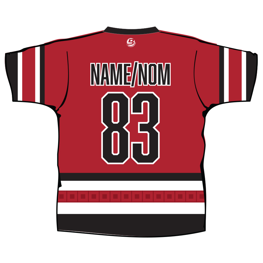Your name will appear in CAPS on the back of the shirt. / Votre nom apparaîtra en MAJUSCULES au dos du chandail.
