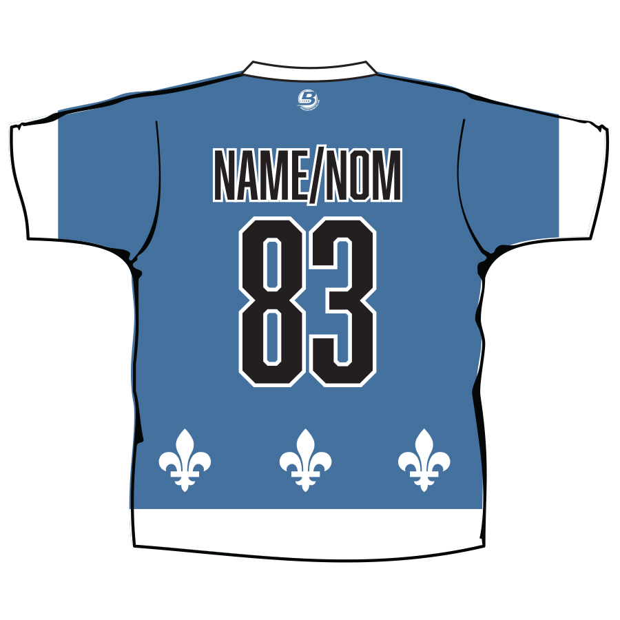 Your name will appear in CAPS on the back of the shirt. / Votre nom apparaîtra en MAJUSCULES au dos du chandail.