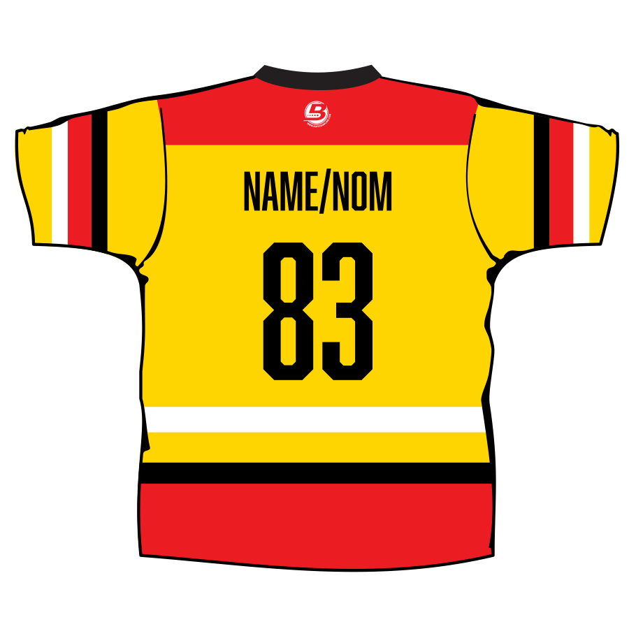 Your name will appear in CAPS on the back of the shirt. / Votre nom apparaîtra en MAJUSCULES au dos du chandail.